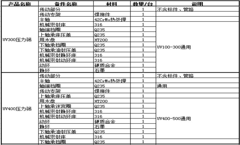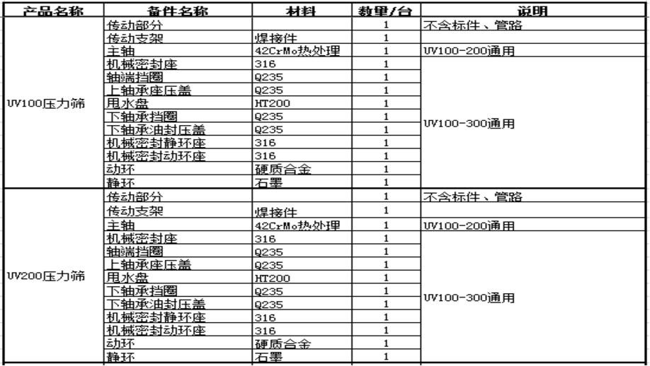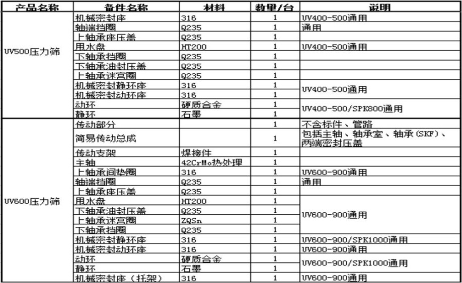 產(chǎn)品名稱:?UV100壓力篩 備件名稱:?傳動(dòng)部分?傳動(dòng)支架?主軸?機(jī)械密封座?軸端擋圈?上軸承座壓蓋?甩水盤?下軸承擋圈?下軸承油封壓蓋?機(jī)械密封靜環(huán)座?機(jī)械密封動(dòng)環(huán)座?動(dòng)環(huán)?靜環(huán)